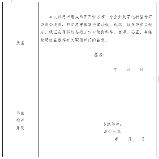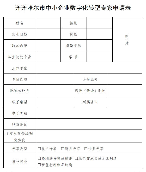 附件:齐齐哈尔市中小企业数字化转型专家申请表